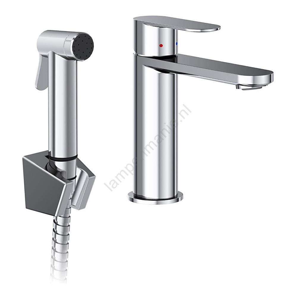 • Wastafelmengkraan Chrome II met bidetdouche in glanzend chroom combineert modern design, gebruiksgemak en waterbesparing.