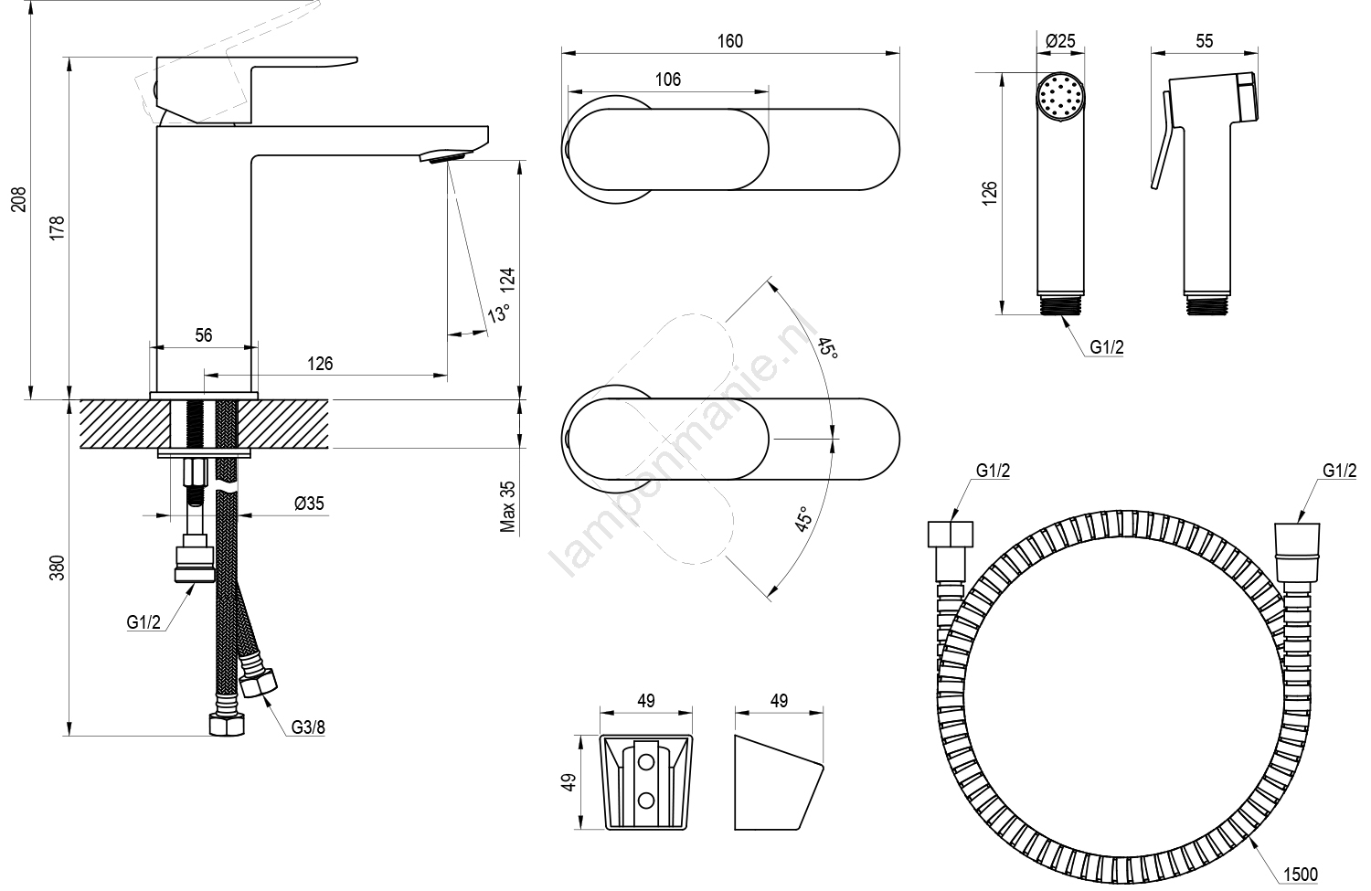 • De kraan bevat een handbidetdouche met terugslagventiel, die comfortabele persoonlijke hygiëne mogelijk maakt zonder aparte bidetinstallatie.