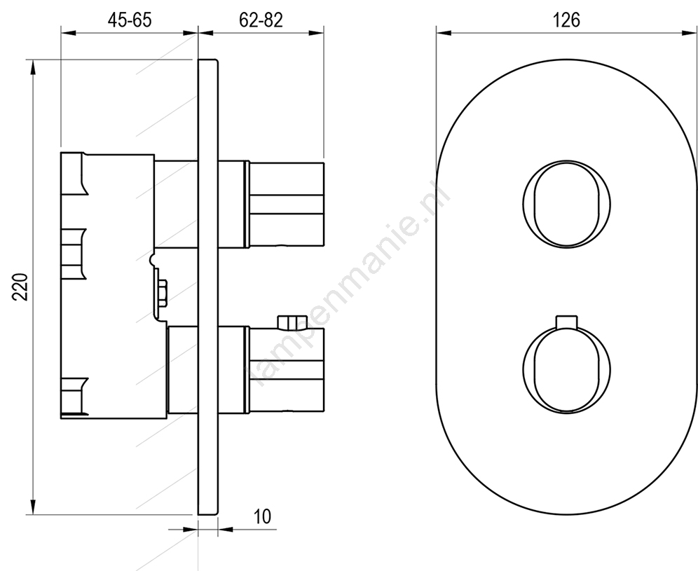 • De thermostatische 2-wegs inbouwmengkraan Chrome II in een elegante zwarte uitvoering is bestemd voor montage in een inbouwbehuizing.