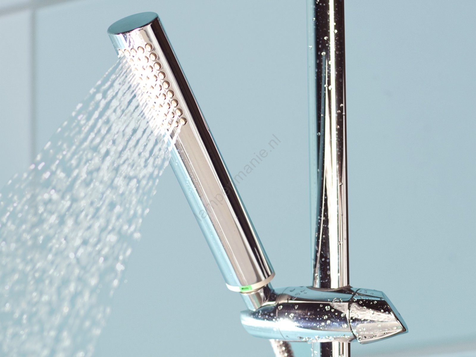 • Handdouche met de Air-functie zuigt lucht in de waterstraal, wat zorgt voor een aangenamere douche-ervaring en tegelijk het waterverbruik verlaagt tot 6,5 liter per minuut.