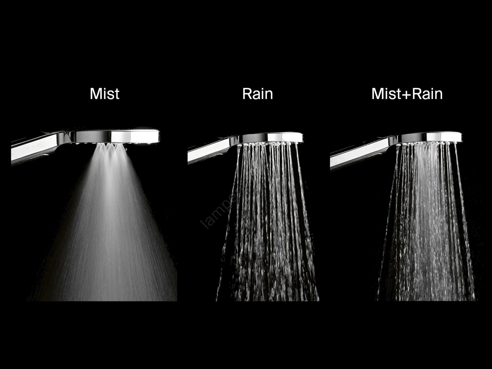 • De handdouche biedt drie waterstraalfuncties – Mist, Rain en de combinatie Mist + Rain.