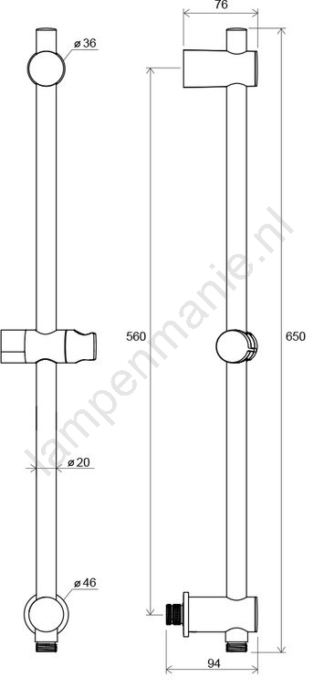 • Inbouwwateruitlaat direct in de stang met G1/2" buitendraad.