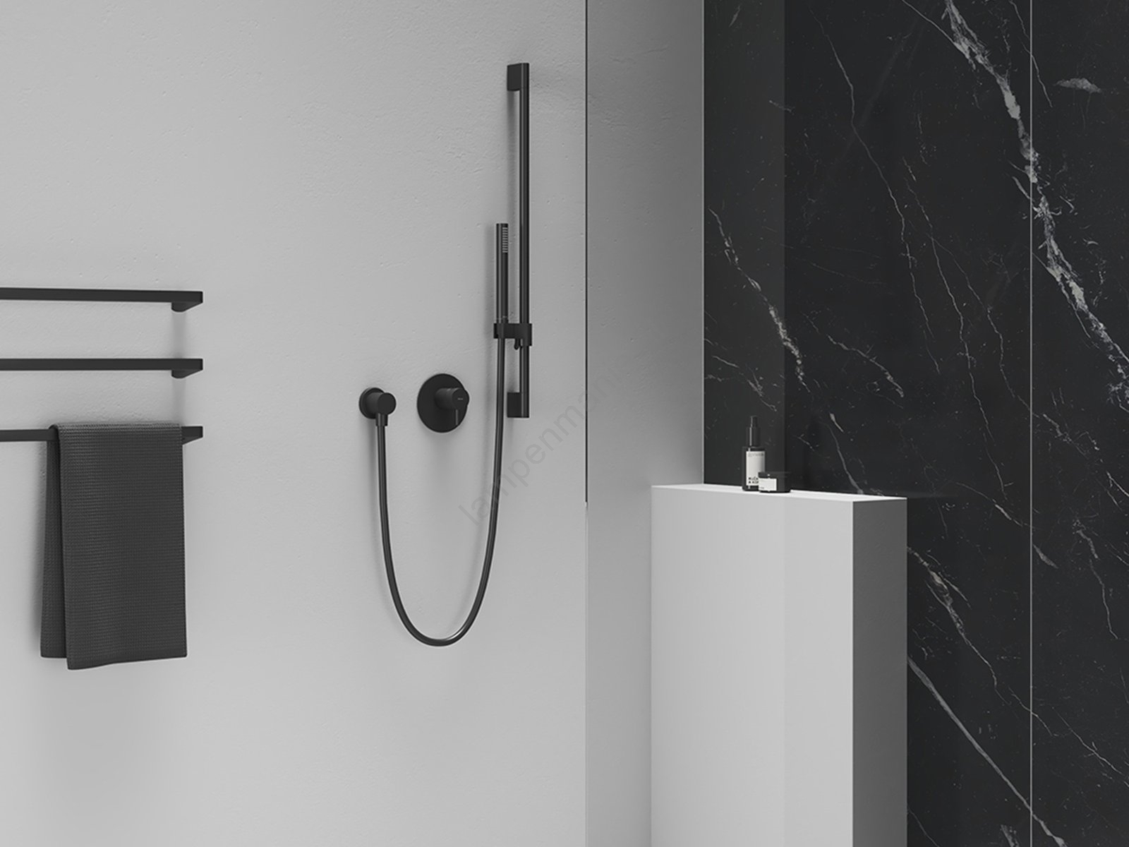• De handdouchehouder is vervaardigd uit duurzaam messing en voorzien van een moderne matzwarte afwerking Black Matt.