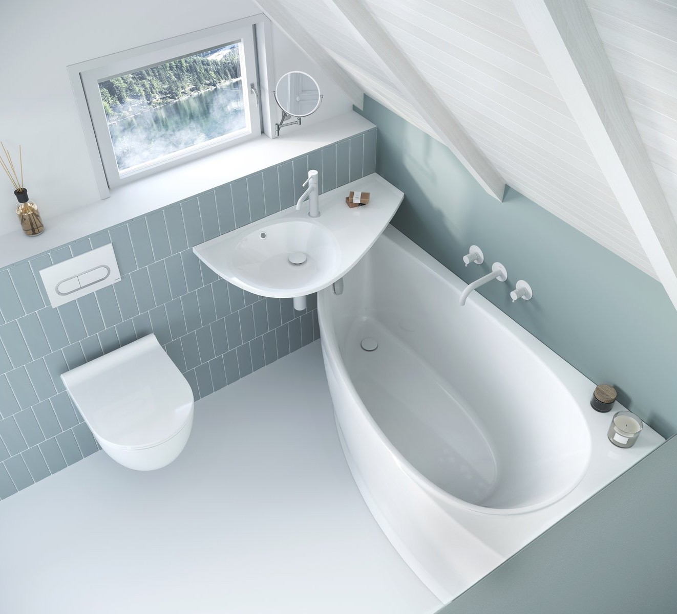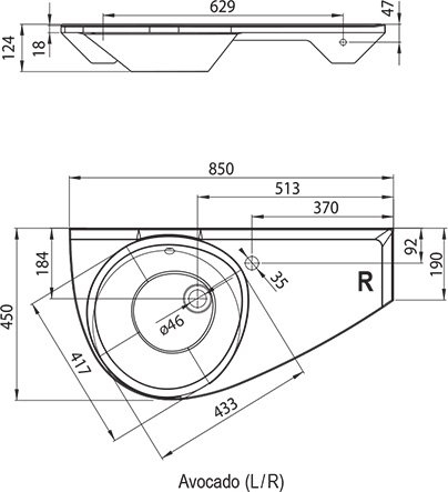 • Voor een harmonieus geheel in de badkamer raden we aan te combineren met andere producten uit de Avocado-collectie, die ook een bad en kranen in hetzelfde design omvat.