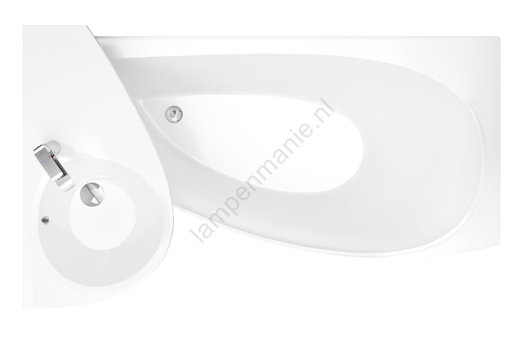 • De wastafel is uitgevoerd met een overloop en een gat voor een eengatsmengkraan met een diameter van 35 mm.