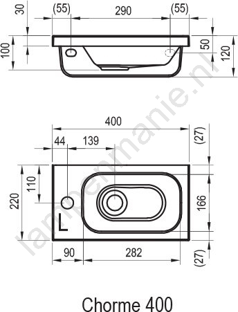 Ravak XJGL1100000 - Hangende wastafel CHROME 40x22 cm gegoten marmer/wit