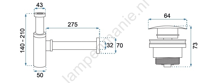 REA-A5692 - Wastafelsifon met CLICK-CLACK-afvoer Ø 6,4 cm, goudkleurig
