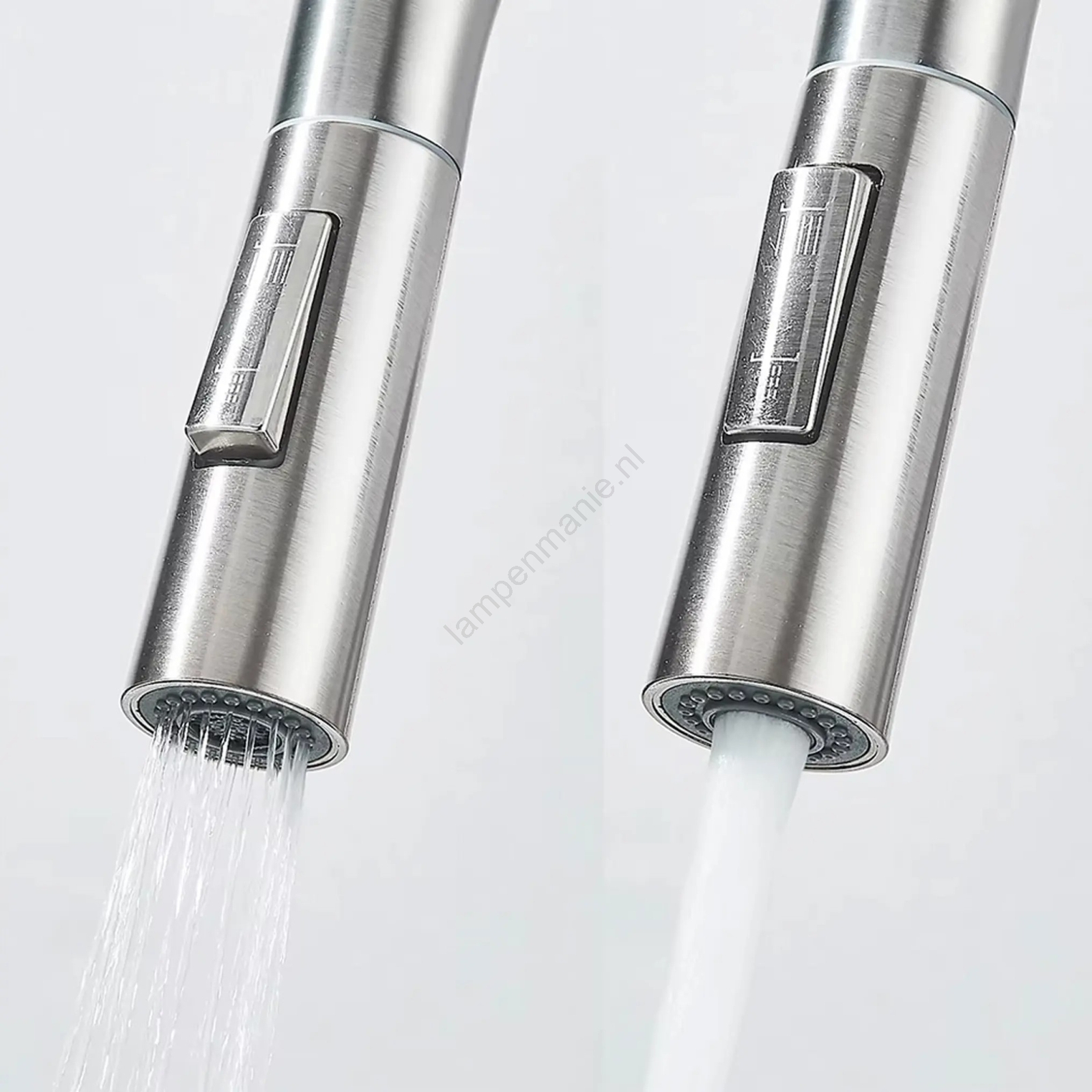 • De tip van de uitloop heeft een schakelaar waarmee u kunt kiezen tussen een vernevelde en een geconcentreerde waterstraal.