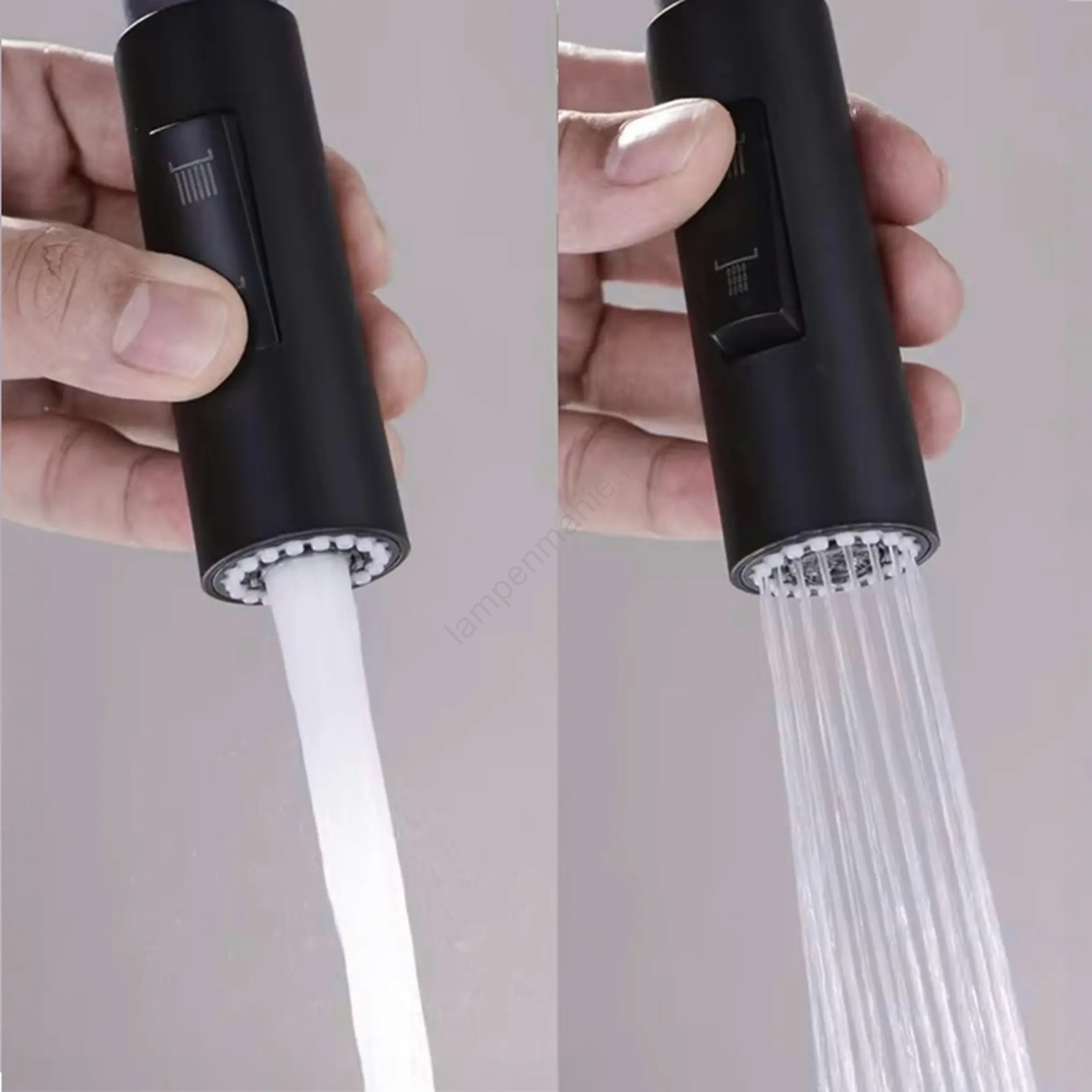 • Het mondstuk is voorzien van een schakelaar waarmee u kunt kiezen tussen een verspreide en een geconcentreerde straal.
