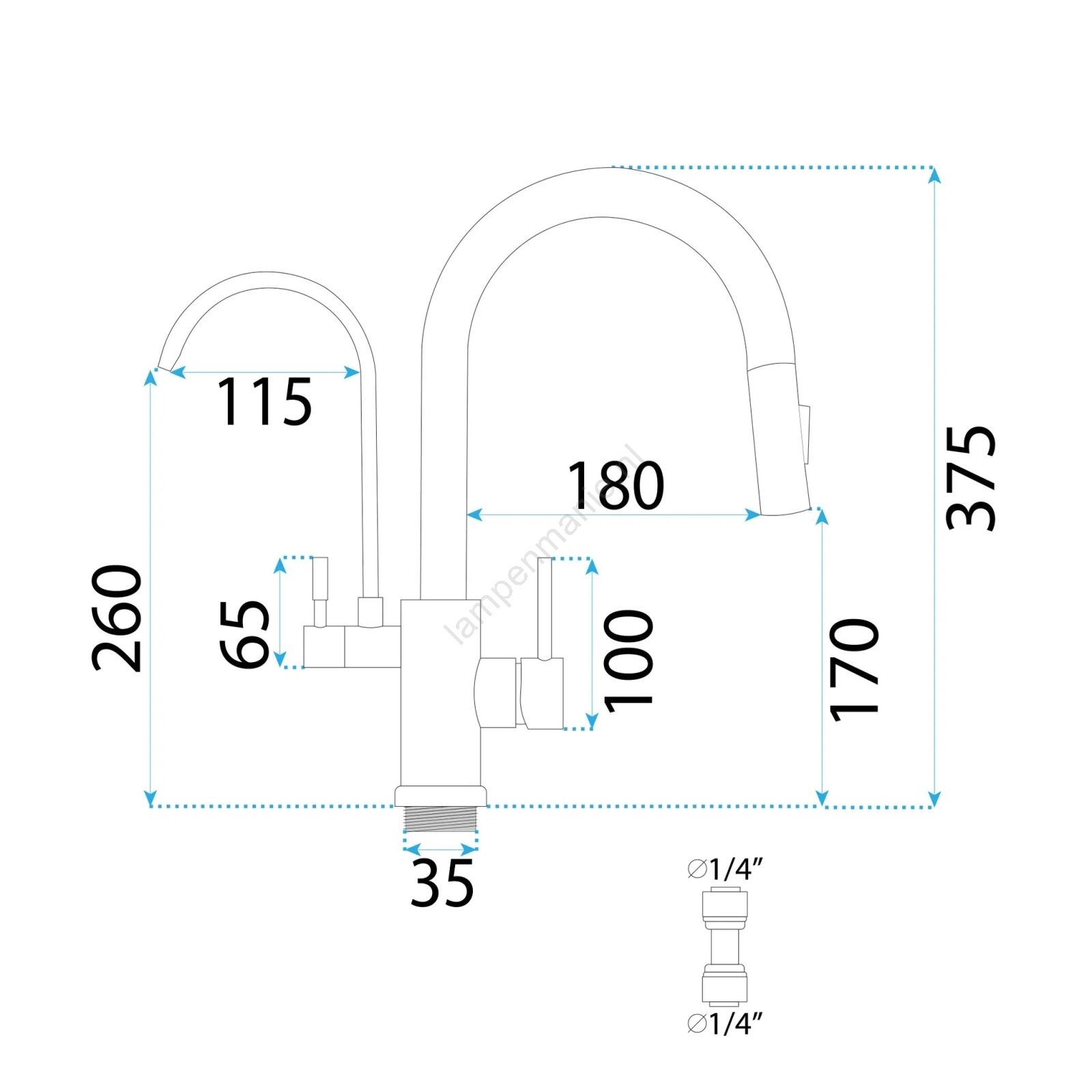 • Mogelijkheid tot aansluiting op een waterfiltersysteem (bediening via een kleinere hendel).