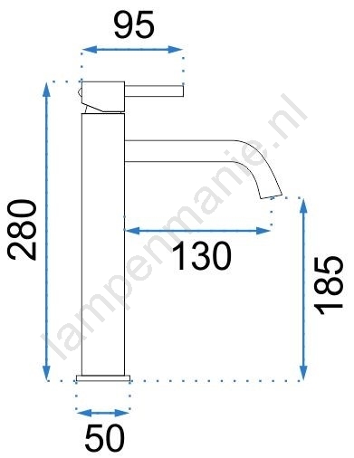 REA-B9409 - Wastafelkraan LUNGO 28 cm goudkleurig