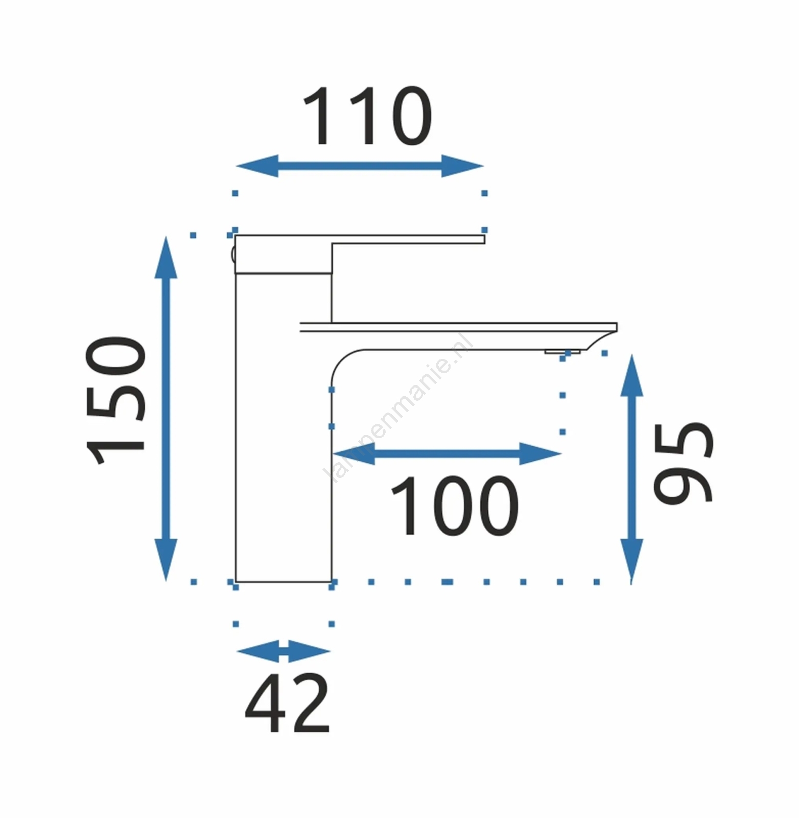 • Eéngreeps wastafelkraan voor eenvoudige regeling van temperatuur en waterstroom.