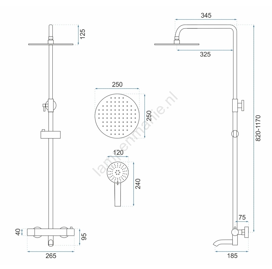 • Verstelbare douchestang: 82 - 117 cm.