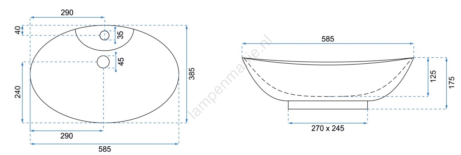 REA-U0160 - Opzetwastafel ROSA 38,5x58,5 cm keramiek/glanzend wit