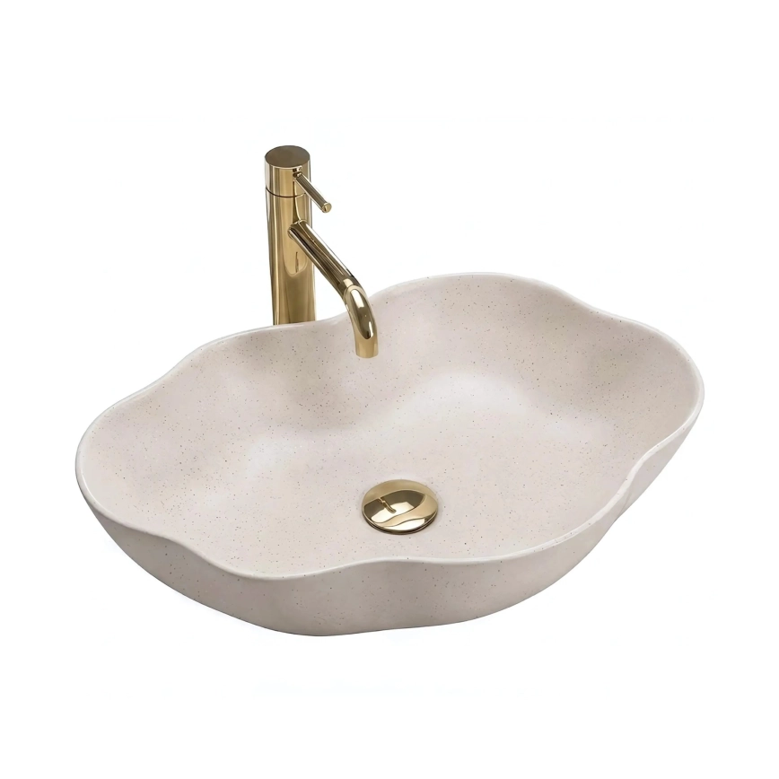 • REA-U0617 - Opzetwastafel PEARL 38x50,5 cm keramiek/beige/steenlook