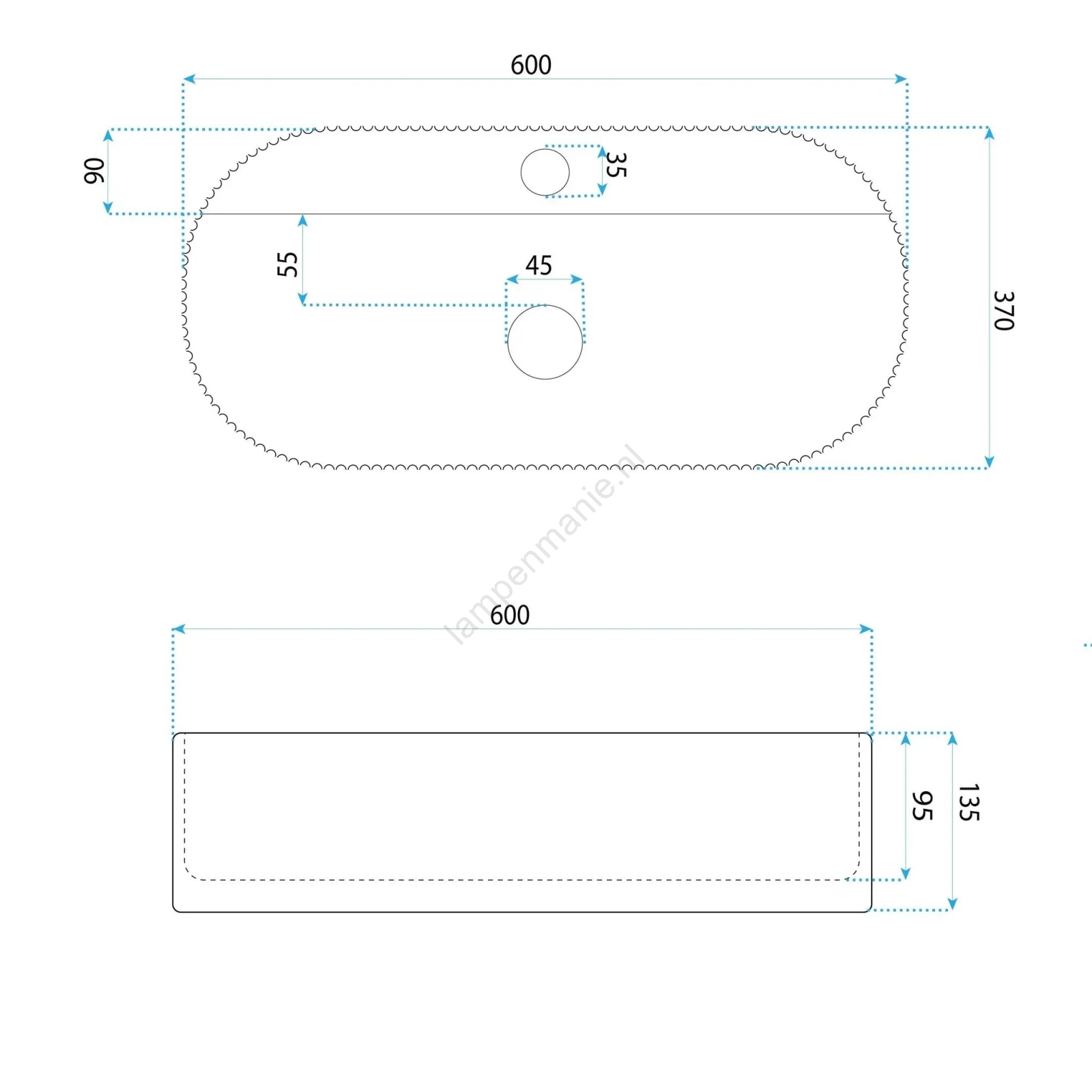 • De wastafel is vervaardigd van hoogwaardig sanitair keramiek.