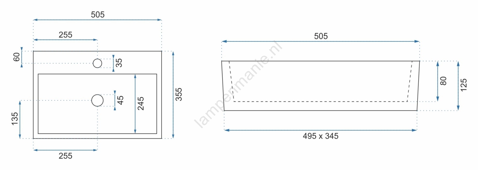 REA-U5000 - Opbouwwastafel VALERIA 35,5x50,5 cm keramiek/glanzend wit