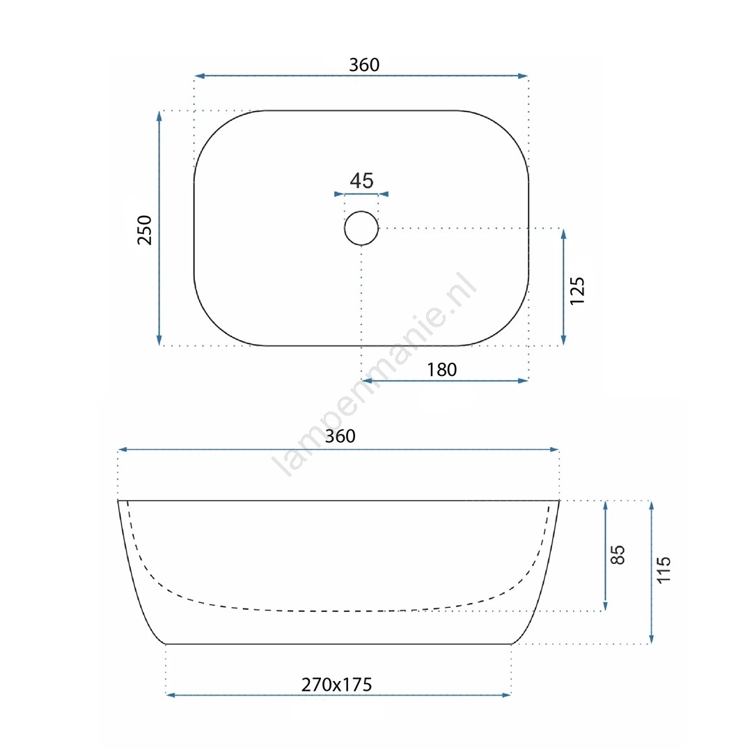 REA-U5667 - Opzetwastafel BELINDA MINI 25x36 cm keramiek/glanzend wit