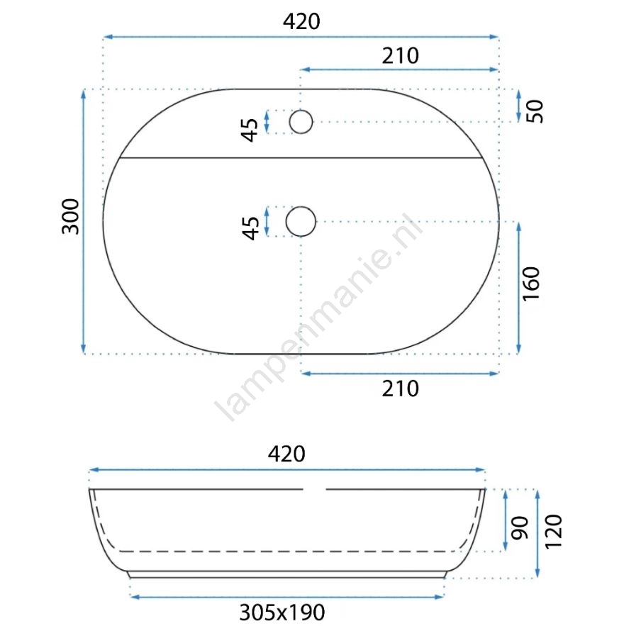 REA-U6617 - Opzetwastafel AURA 30x42 cm keramiek/glanzend wit