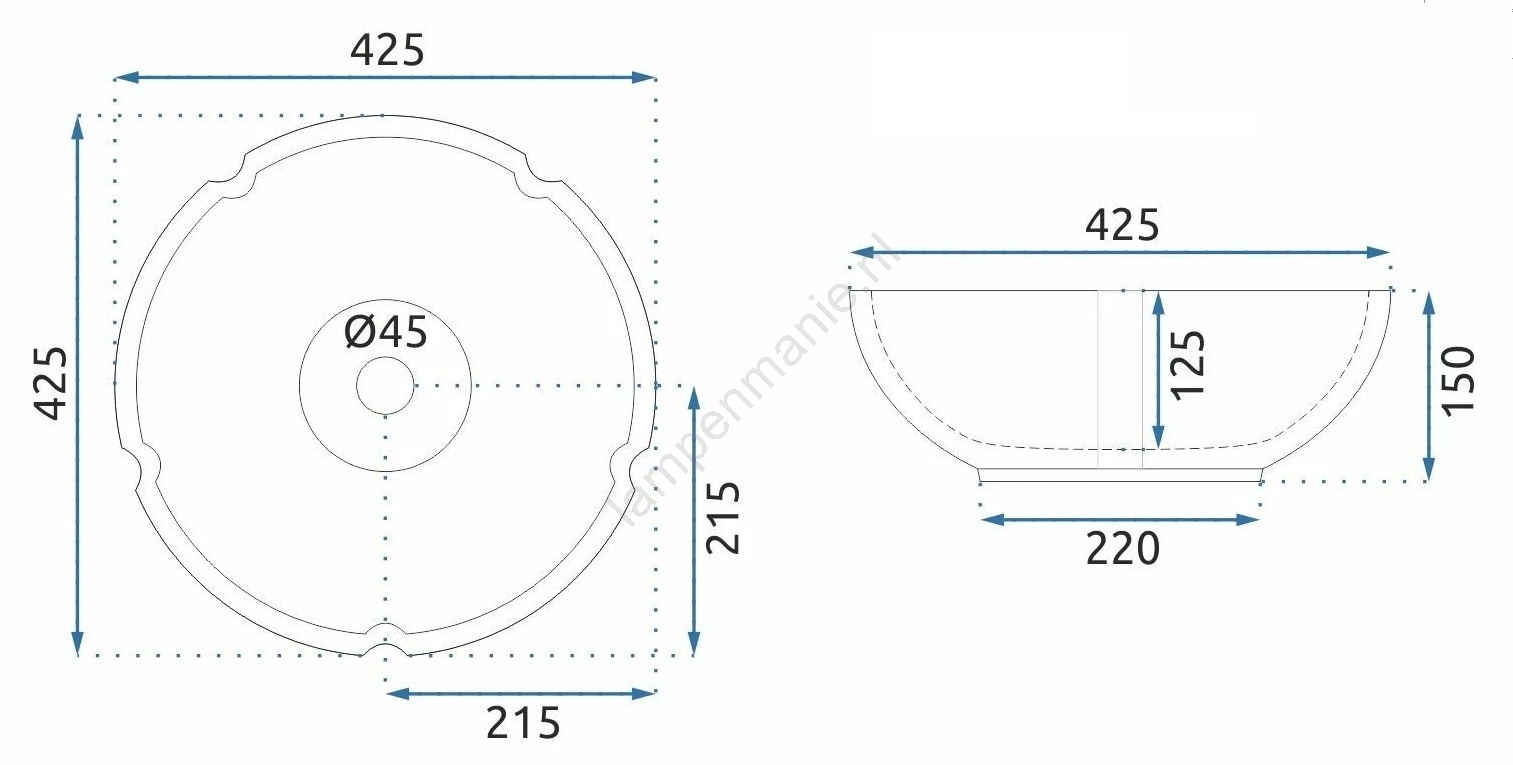 • REA-U7504 - Opzetwaskom FELICIA Ø 42,5 cm, keramiek met bloemmotief