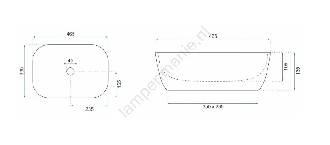 • REA-U3323 - Opzetwastafel BELINDA 33,5x46,5 cm keramiek/steenlook