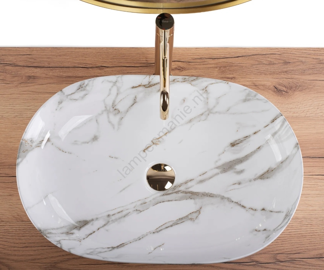 • REA-U9656 - Opzetwastafel CLEO 41 x 60,5 cm keramiek/marmerdecor