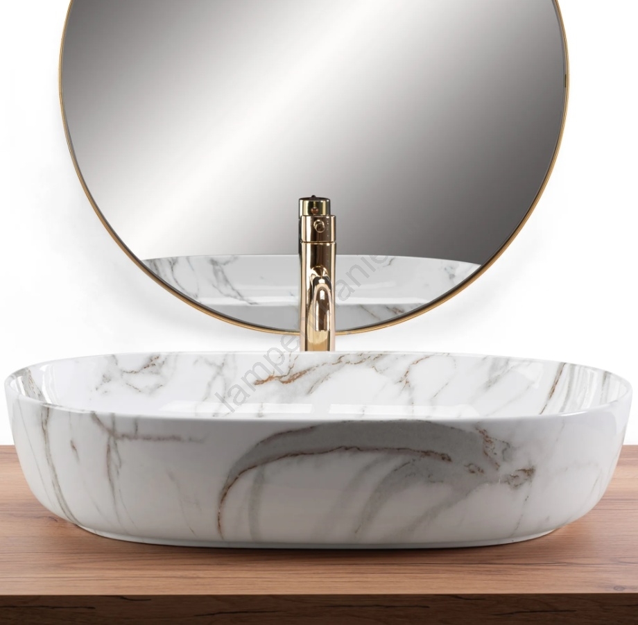 REA-U9656 - Opzetwastafel CLEO 41 x 60,5 cm keramiek/marmerdecor