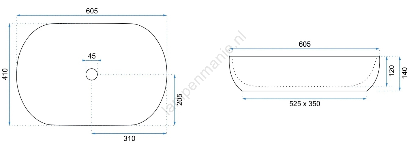• REA-U0024 - Opzetwastafel CLEO 41x60,5 cm keramiek/glanzend wit