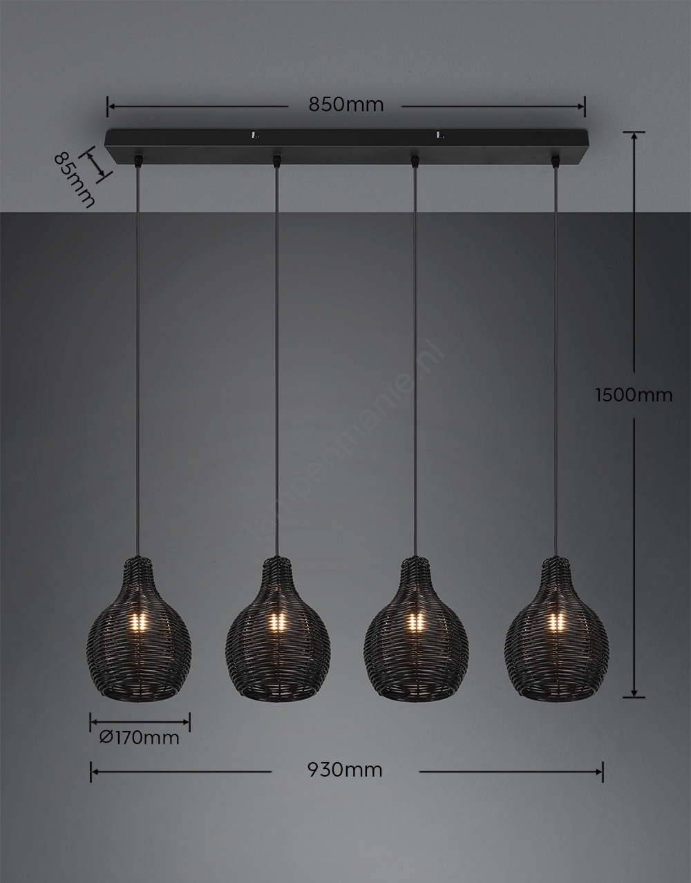 Reality - Hanglamp met kabel SPROUT 4xE14/30W/230V zwart/rotan kenmerkt een mooi en functioneel ontwerp.  Voor het licht is een lamp met E14 fitting geschikt. Hier kunt u andere lampen tegen voordelige prijzen kopen. U heeft een interessante aanwinst voor uw woning.
