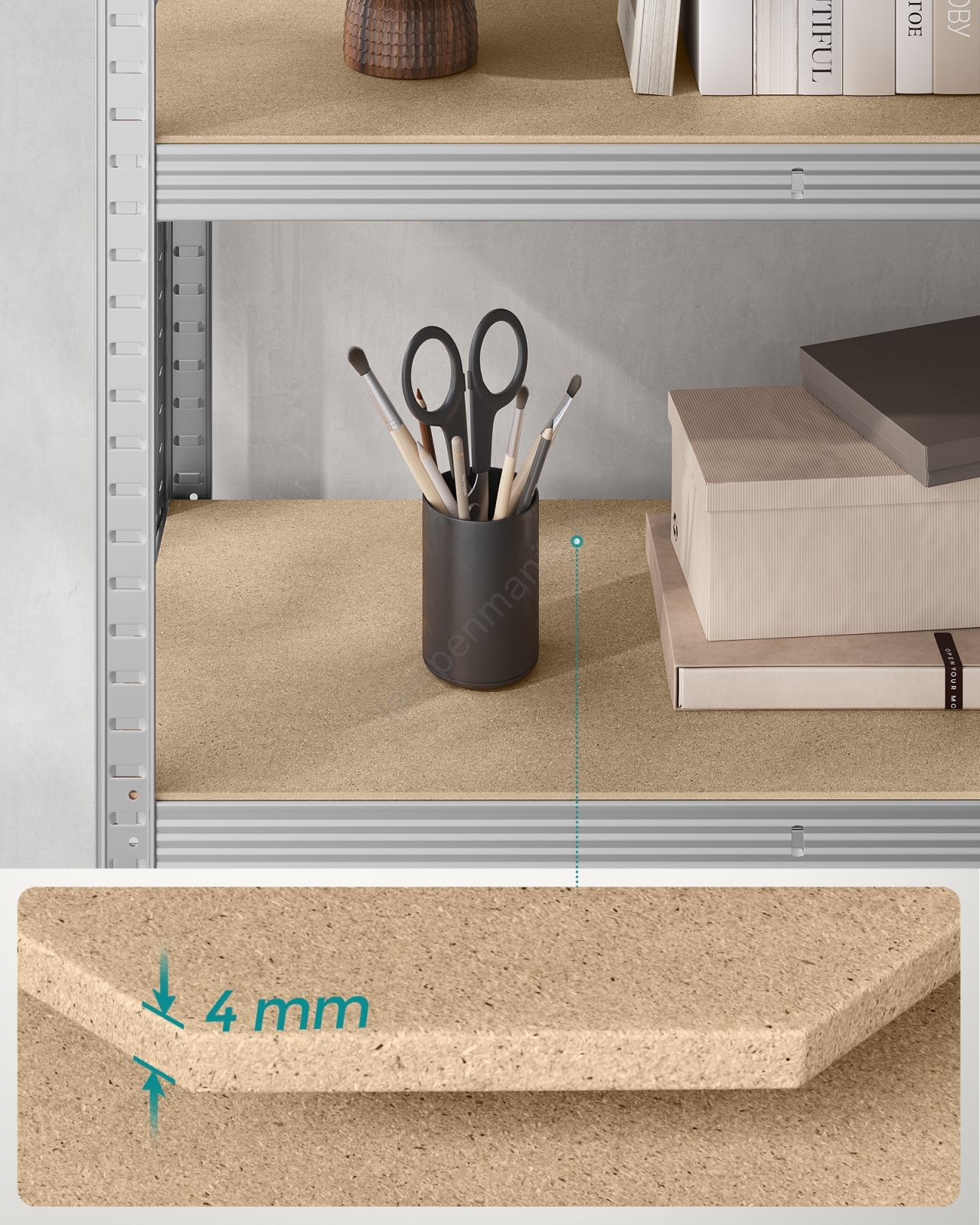 • Elke plank draagt tot 120 kg en kan veilig verf, gereedschap en fitnessapparatuur ondersteunen.