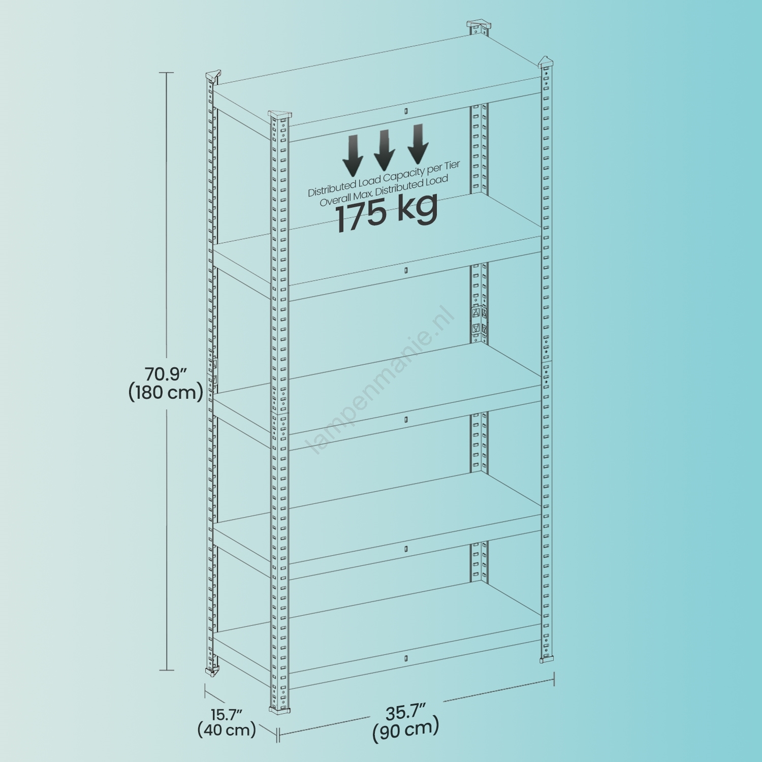 • Elke plank draagt tot 175 kg en is geschikt voor zware items zoals verf, gereedschap en fitnessapparatuur.