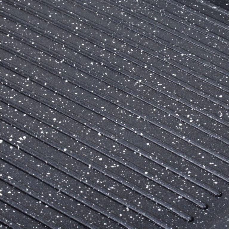 • Het geribbelde oppervlak creëert niet alleen karakteristieke grillstrepen, maar zorgt ook voor effectieve afvoer van overtollig vet.