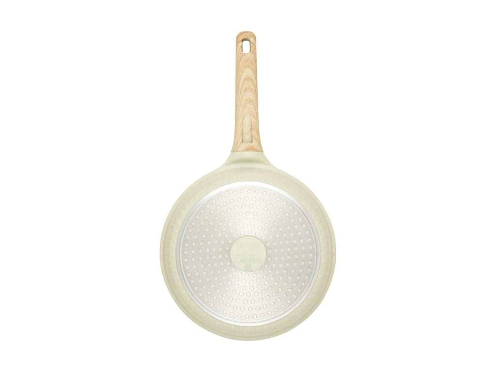 • Met een diameter van 24 cm en een hoogte van 5,5 cm biedt hij voldoende ruimte voor grotere porties en past hij bovendien comfortabel op elk type kookplaat.