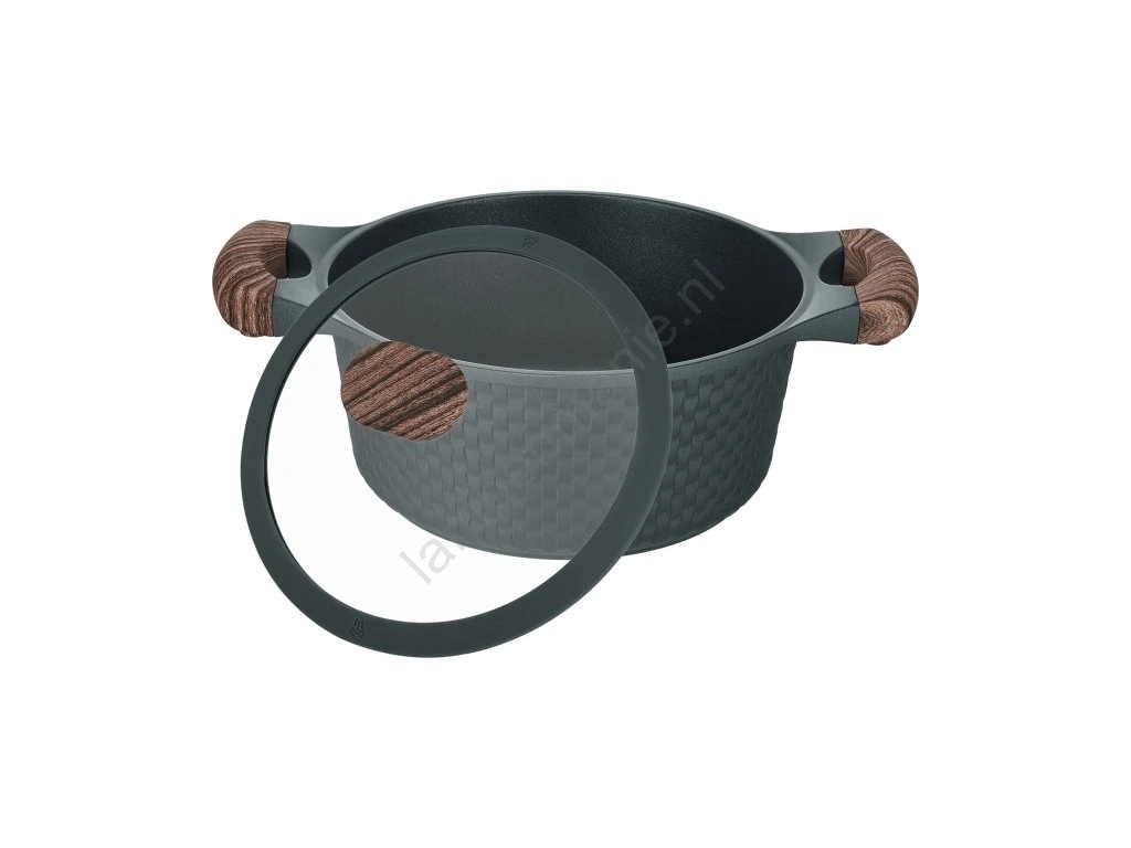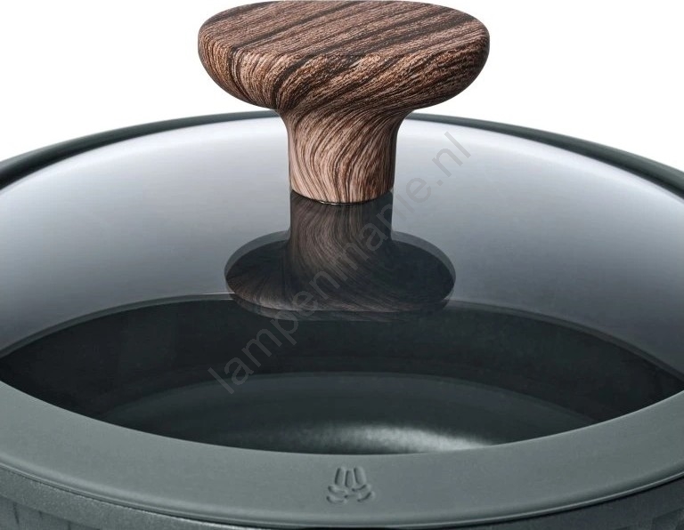 • Ergonomische handgrepen met Soft Touch‑afwerking in houtlook blijven koel aanvoelen, bieden een veilige en comfortabele grip en hebben bovendien een praktisch ophanghaakje.