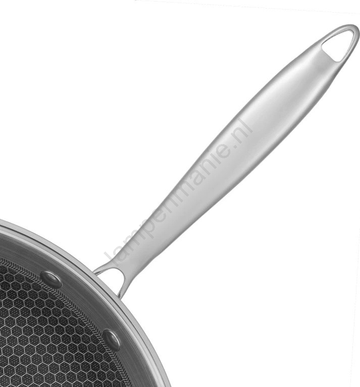 • De pan heeft een ergonomisch roestvrijstalen handvat van het type Stay-Cool, dat koel aanvoelt bij aanraking en zo veilig en comfortabel hanteren mogelijk maakt.