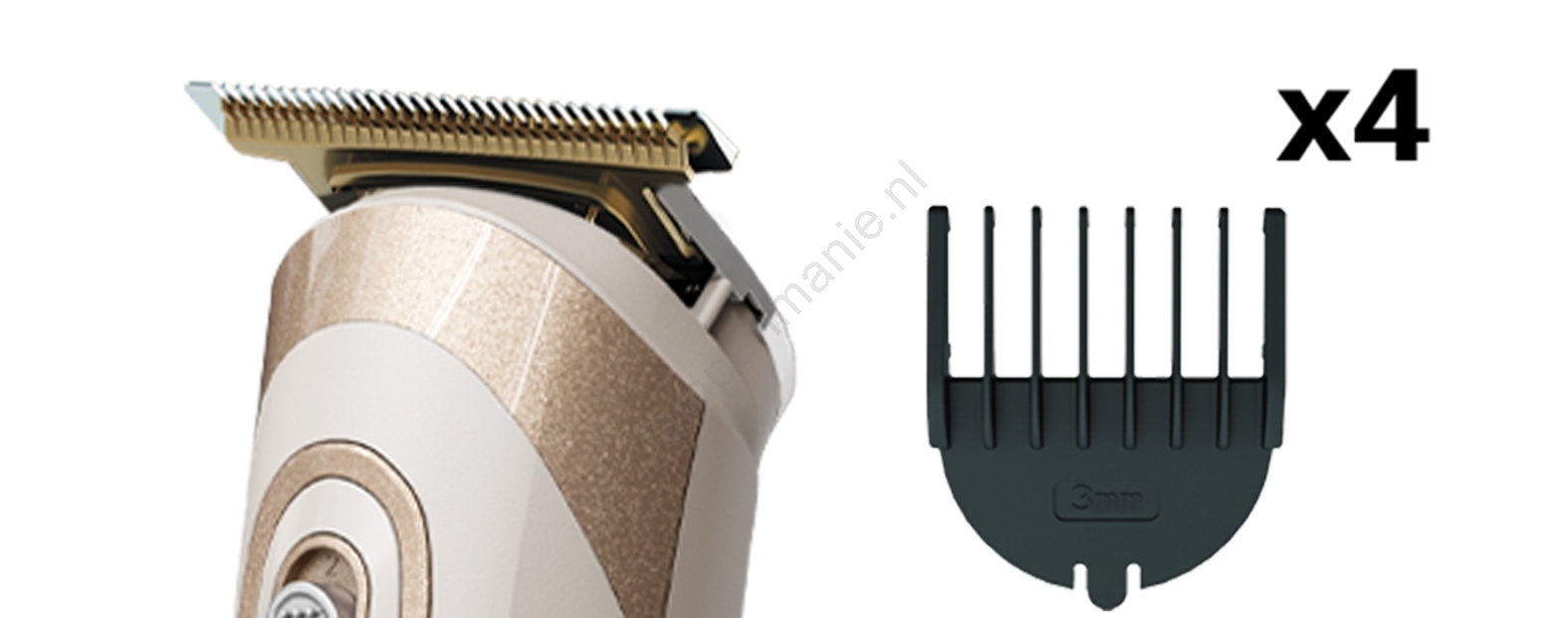 • Instelbaar baardopzetstuk (3–7 mm) met 1 mm nauwkeurigheid en 4 vaste haarkammen (3-6-9-12 mm).