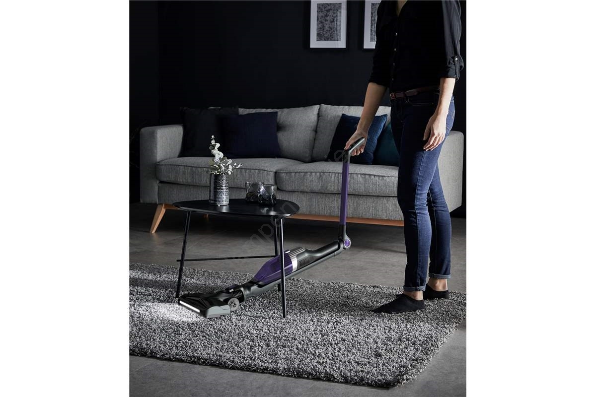• Krachtige gemotoriseerde borstel met LED-verlichting – betere zichtbaarheid van stof en vuil, zelfs in schaduwrijke hoeken.