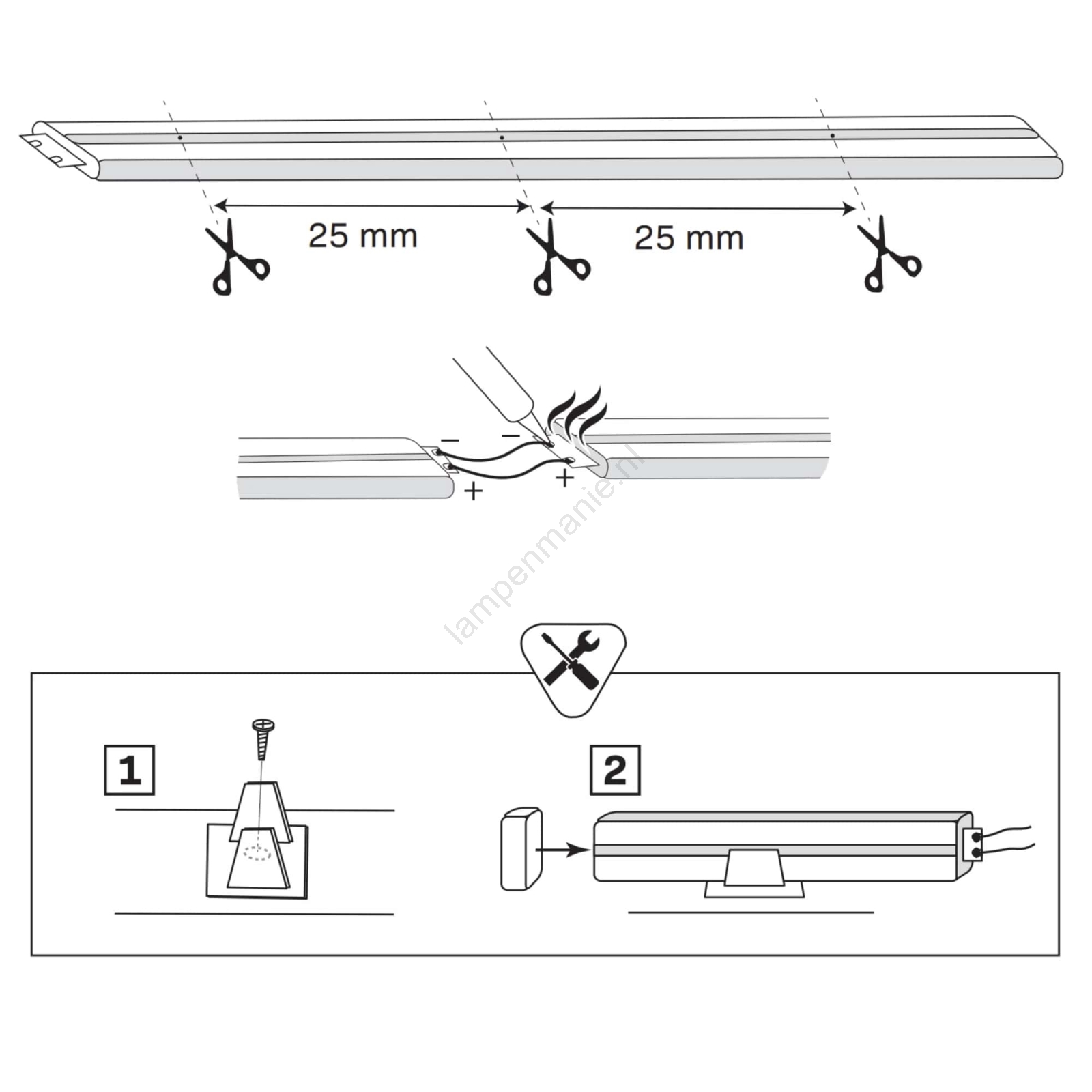 • Voor de werking is minimaal een 36 W elektronische voeding voor LED-strips vereist (niet inbegrepen).
