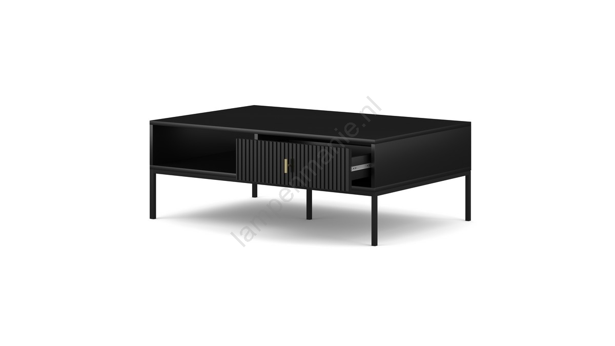 • Heeft één open vak en twee laden met verticale ribbelstructuur voor een verfijnd visueel effect.