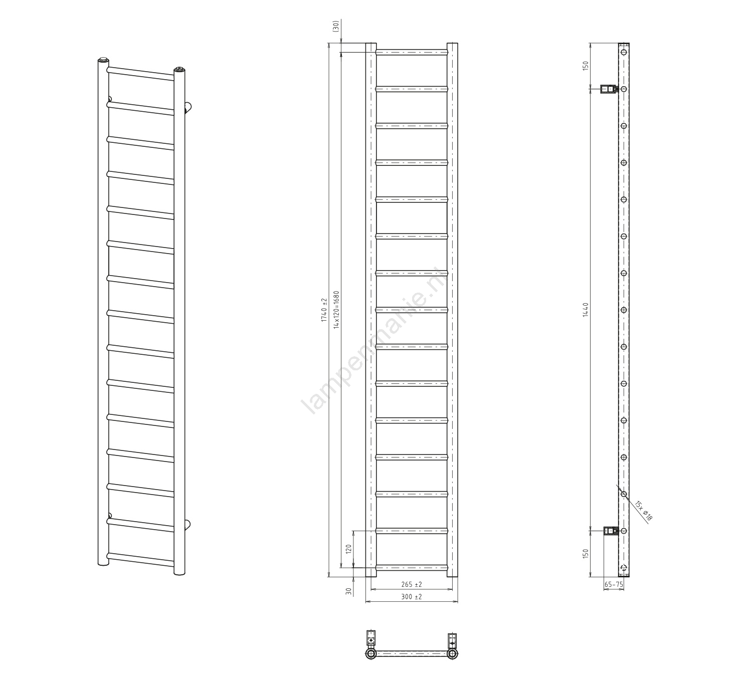 Sapho - Badkamerradiator DINA 335W 30x174 cm mat zwart