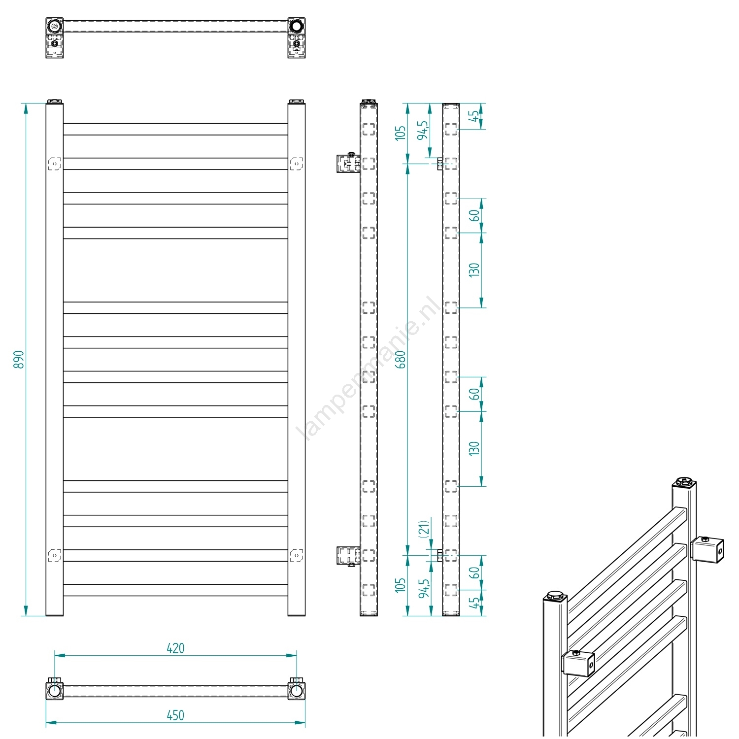 Sapho - Badkamerradiator METRO 239 W / 230 V, 45 x 89 cm, glanzend chroom
