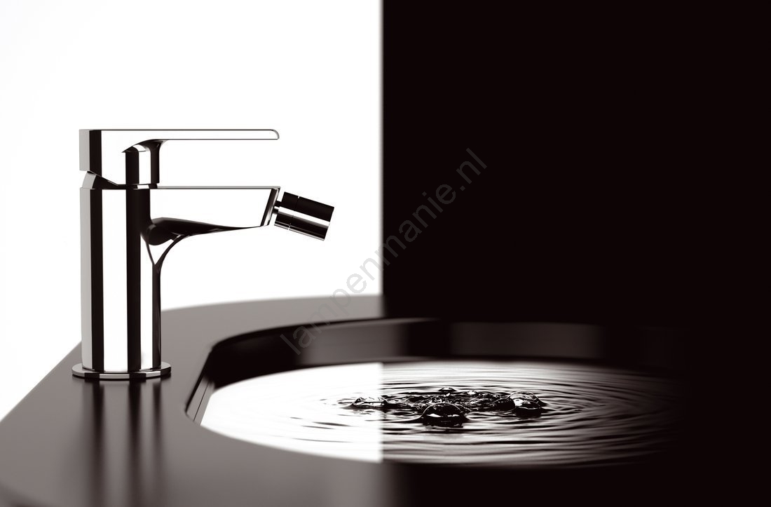 • Deze bidetkraan heeft een cilindrische behuizing en een hoekige uitloop.