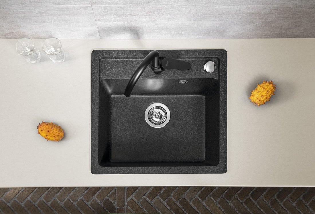 • De spoelbak is vervaardigd uit graniet en heeft een modern ontwerp.
