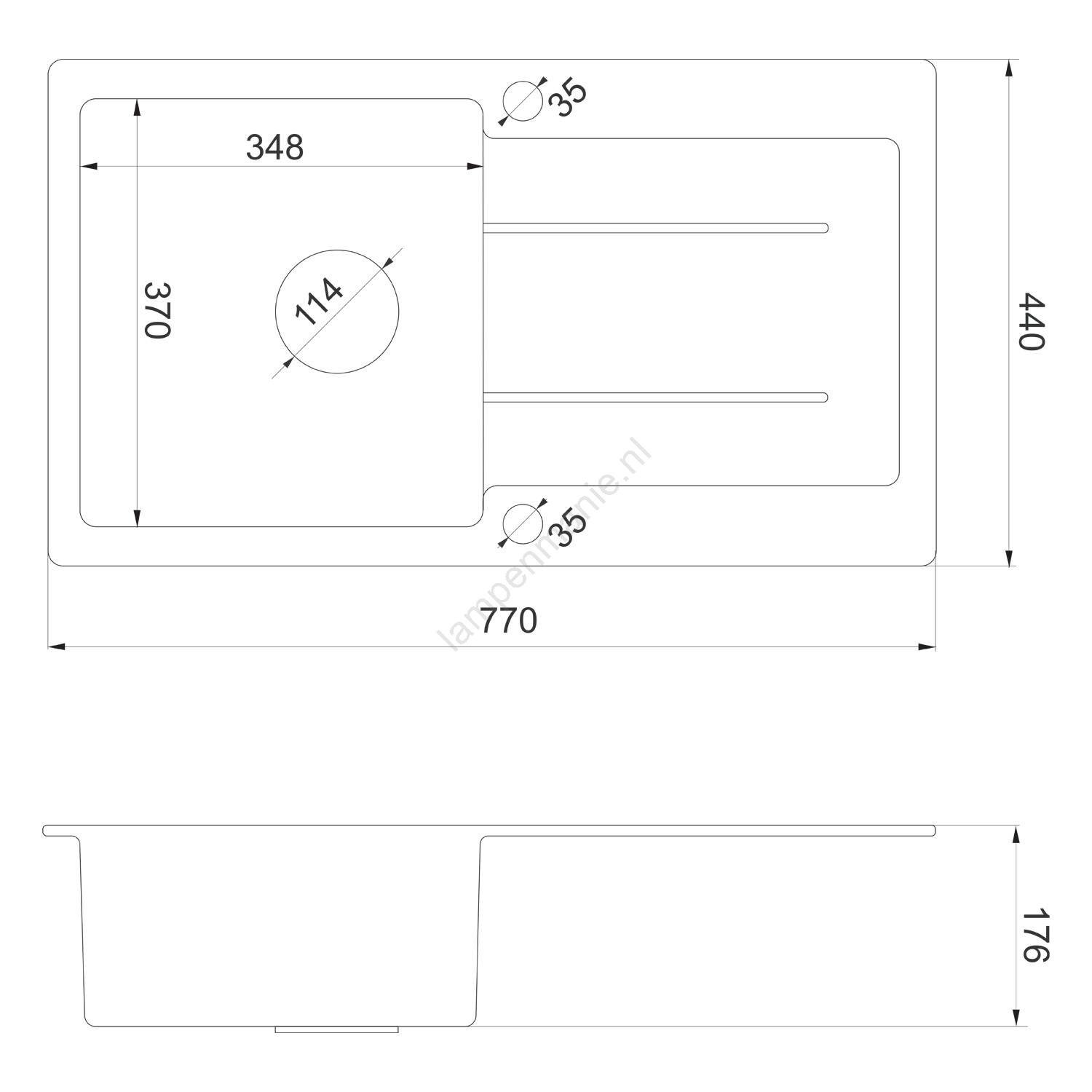 • De spoelbak is gemaakt van graniet en heeft een geïntegreerd afdruipvlak.