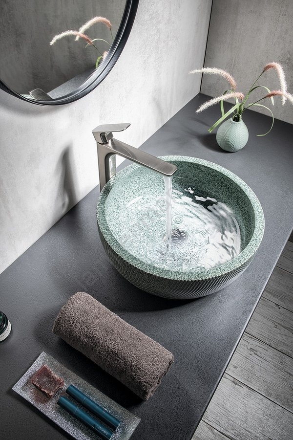 • De wastafel is gemaakt van natuurlijk materiaal.