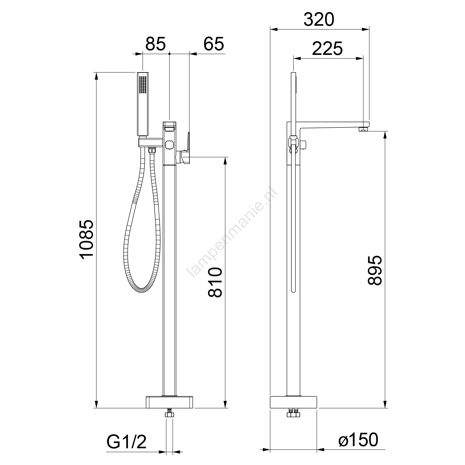 Sapho - Vrijstaande badmengkraanset TURSI, glanzend chroom
