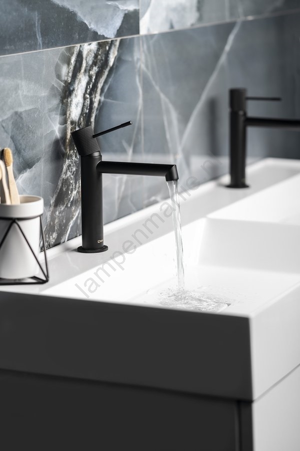 • De elegante matzwarte afwerking past in elk badkamerinterieur.