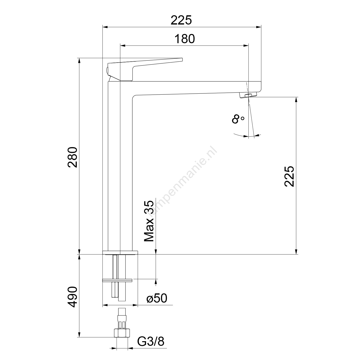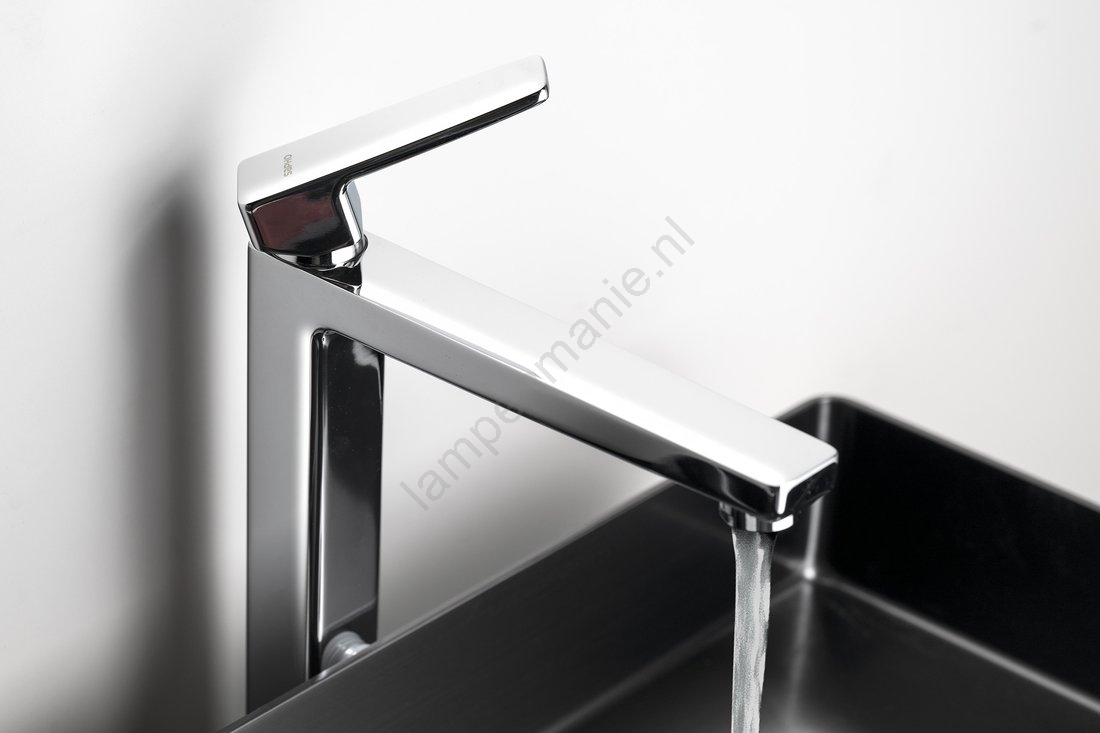 • De montage is staand (op het wastafelblad) en de bediening gebeurt met een hendel.