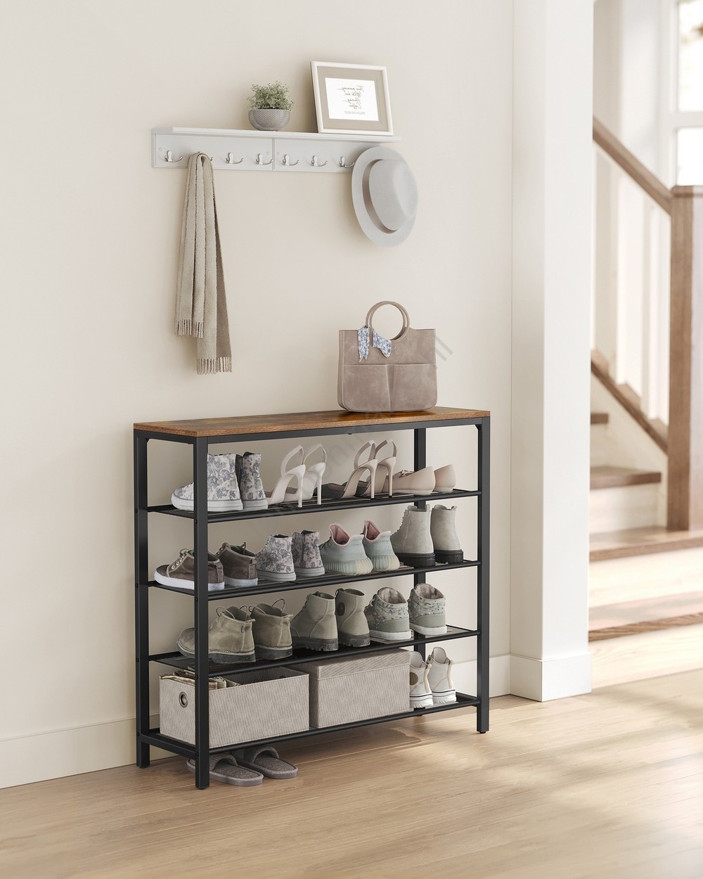 • Met een draagvermogen van 10 kg op het bovenblad en maximaal 5 kg per plank biedt dit rek een veilige plek voor al uw schoenen, tassen en decoratie.