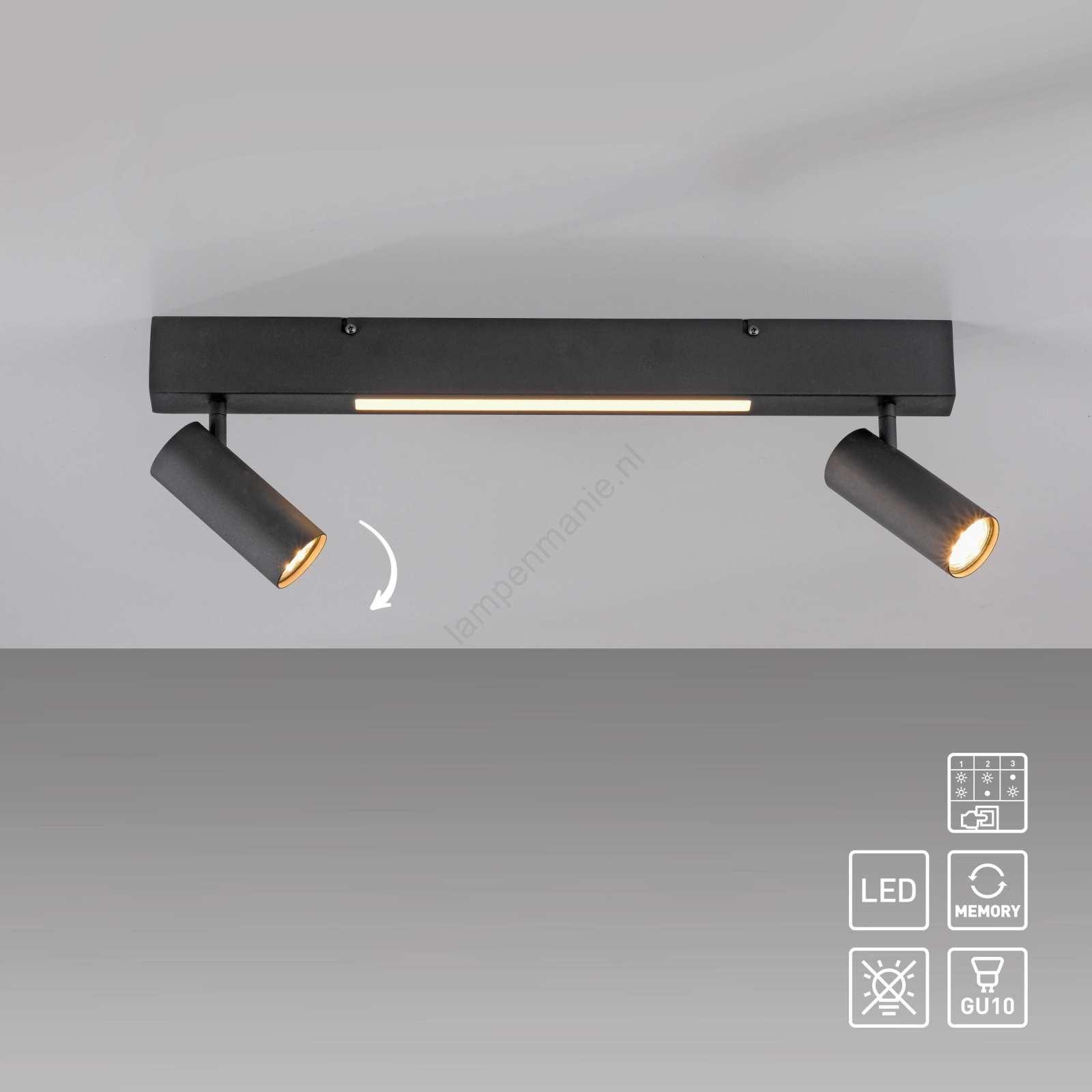 Schöner Wohnen 11793-18 - LED-spot DANTE 2xGU10/10W/230V + LED/7,2W zwart